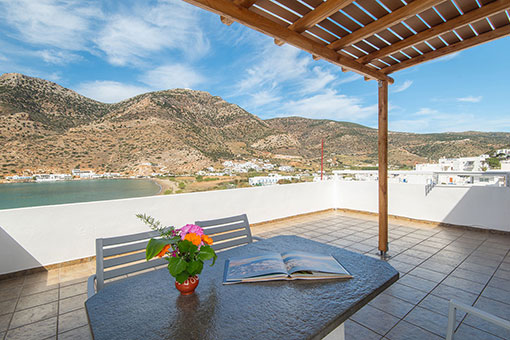 Sie bestehen aus 2 separaten Zimmern und haben einen eigenen Balkon oder eine Terrasse mit Blick auf das Meer und den Strand von Kamares.